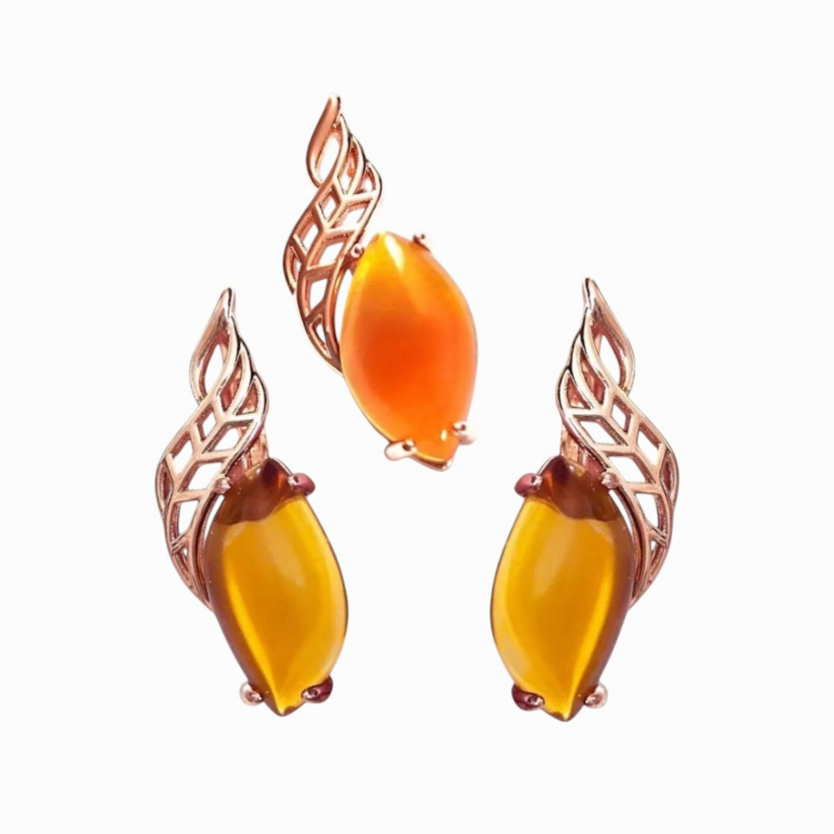 Комплект Серьги женские и кулон подвеска "Янтарная искра" из Дубайского золота - это изысканная ювелирная бижутерия, которая станет настоящим украшением для любой женщины.