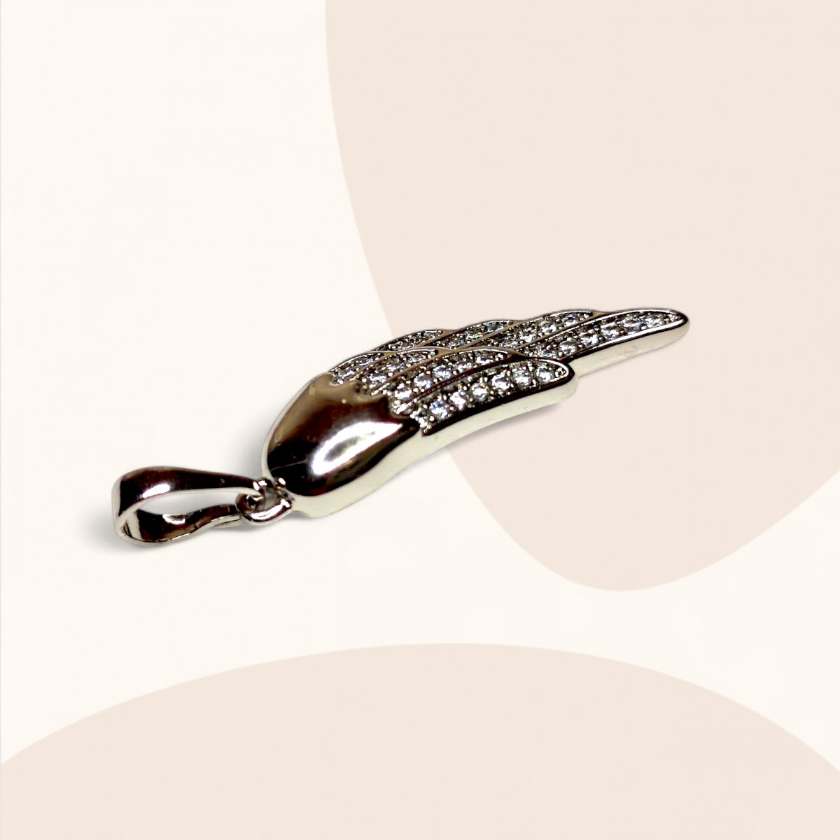 Кулон "Крыло ангела" с фианитами, родирование (без цепочки)