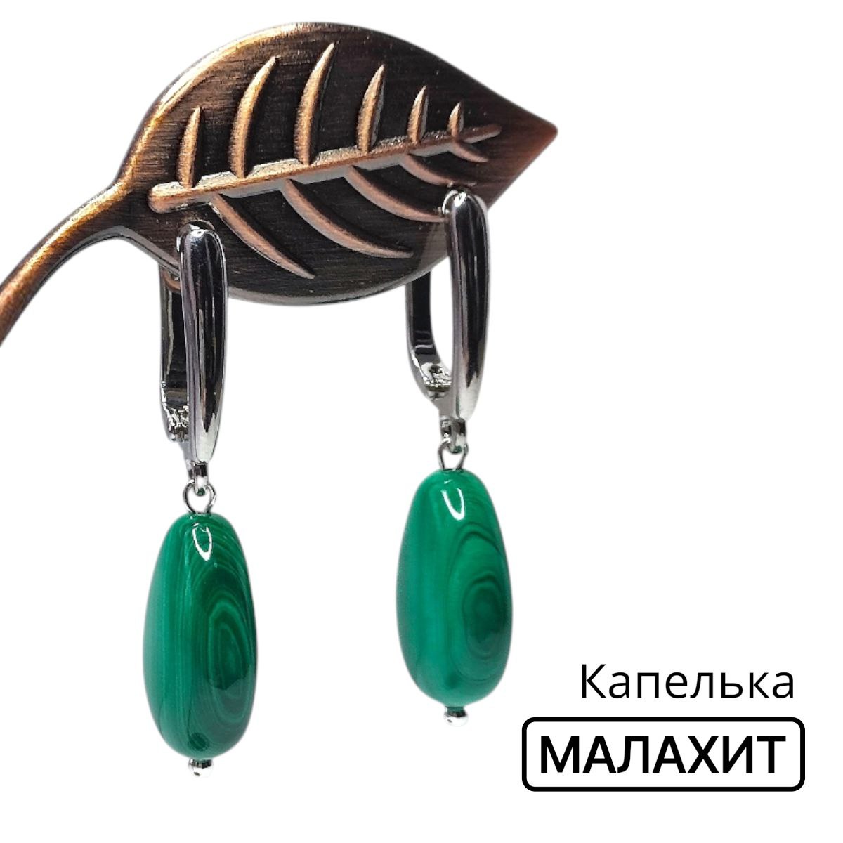 Серьги с Малахитом из натурального камня в форме капельки — даруют удачу, гармонию и защиту